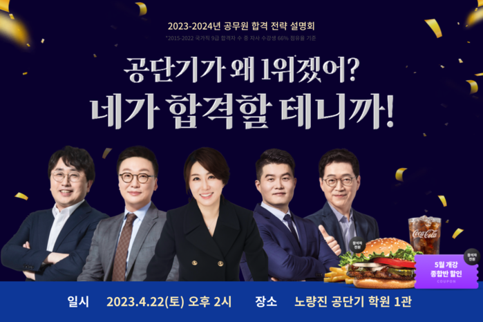 공단기는 이번 설명회에 참석한 수험생 전원에게 햄버거 세트를 제공하고, 5월에 개강되는 종합반 할인 쿠폰 혜택을 제공한다.