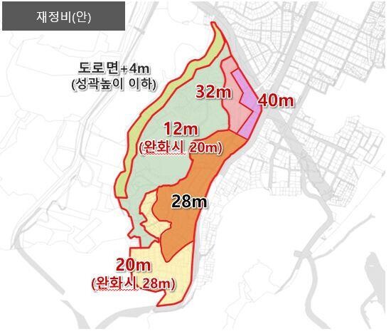구는 조건 없는 '절대높이 8m 완화'를 요청했다. 주변 지역과의 높낮이를 비교할 때, 이들 지역에 조건부 완화를 건다는 것은 과도하다는 입장이다.