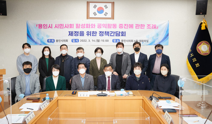 이번 간담회는 지난 1월에 개최한 간담회에 이어 각계각층의 민의를 추가로 반영하기 위해 마련됐으며, 윤원균 의원의 진행으로 장정순·김희영·김진석·명지선 의원과 이태우 군포시 공익활동지원센터 센터장, 안명희 경기도 공익활동지원센터 선임매니저, 최민열 용인YMCA 사무총장, 이종환 시민파워 사무국장, 이정현 용인환경정의 사무국장, 최홍서 용인시 청년정책네트워크 위원장, 강창환 용인시 새마을회 총괄부장, 허정 해병대전우회 용인시지회장, 용인시 관계자 등이 참석했다.