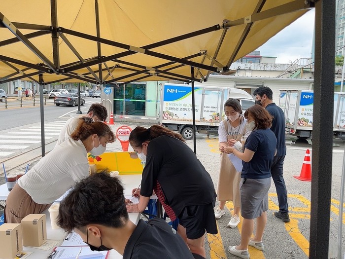 경기 포천시 자살예방센터가 지난 1일 하나로마트 포천 농협 본점에서 ‘2022년 자살 예방 인식개선 캠페인’을 전개했다. 이날 캠페인에서는 자살 예방에 관한 인식도 조사와 자살 예방법 등 자살 예방에 대한 인식개선 프로그램을 홍보했다. 사진은 이날 캠페인이 진행되고 있는 모습. (사진제공=포천시청)