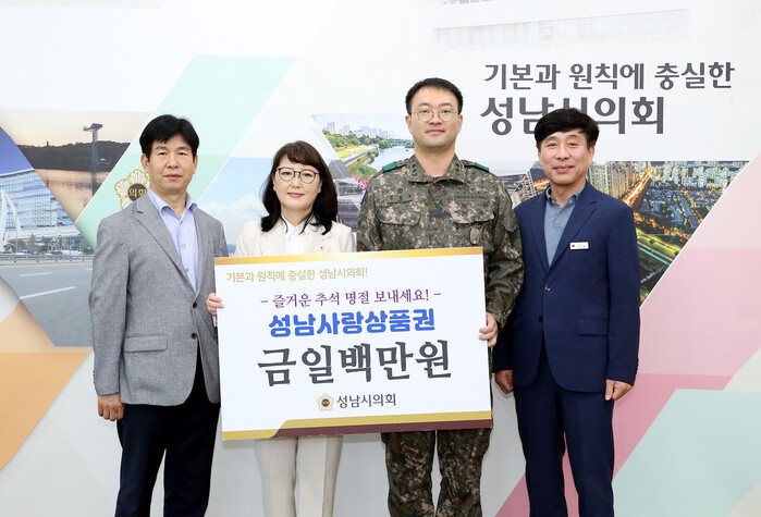 [성남=오왕석 기자] 성남시의회는 추석 명절을 앞두고 지난 20일 성남시의회 부의장실에서 관내 소재 170여단 제3대대를 격려하며 명절의 정을 나누었다.
