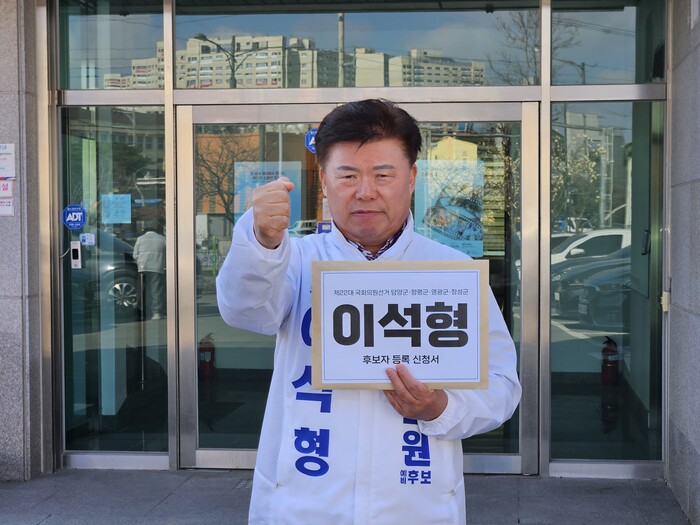 [함평=황승순 기자]이석형 前 41·42·43대 함평군수가 21일(오늘) 오전 9시 30분 영광군선거관리위원회에 방문하여 담양군·함평군·영광군·장성군 제22대 국회의원 선거에 정식으로 무소속 후보자 등록을 마치고 본격적인 선거운동에 돌입했다.