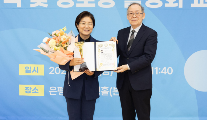 | ▲ 김미경 서울 은평구청장이 ‘2023년 우수 국정감사 국회의원 및 지자체 의정&올해를 빛낸 인물 대상’에서 지방행정 최우수 구청장 부문 지자체장 ‘행정대상’을 수상했다. (사진=은평구청 제공) |