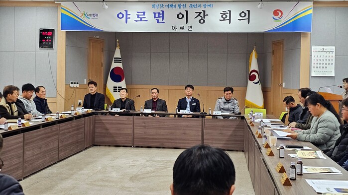 김주보 야로면장은 “설 명절을 앞두고 바쁜 시기에 참석해주신 이장님들께 감사 드린다”며 “다들 바쁘시겠지만 마을 대청소 등에 더욱 힘써주시기를 부탁드리고, 다들 즐거운 설 명절을 보내시기를 바란다”고 말했다.