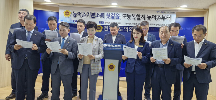 [남악=황승순 기자]전라남도의회 도농복합시 농어촌 지역구 도의원들이 9월 18일, 『도농복합지역 농어촌(읍면)에 대한 차별 해소를 위한 법령·제도 개선 촉구 성명서』를 공동으로 발표했다.