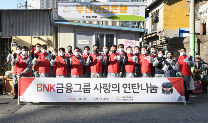 [시민일보 = 여영준 기자] BNK금융그룹이 연말을 맞아 지역 이웃들에게 나눔의 온기를 전하기 위해 ‘BNK 사랑의 연탄나눔’ 행사를 진행했다고 20일 밝혔다.