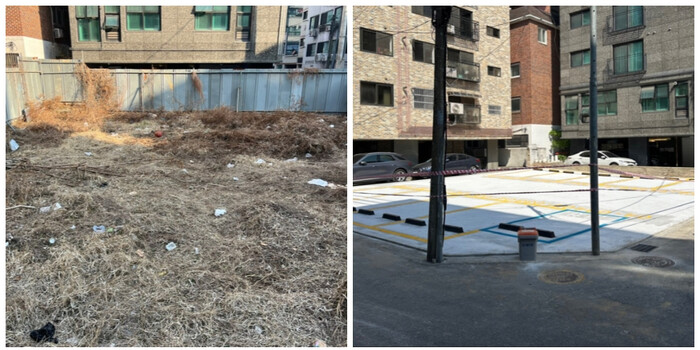 | ▲ 자투리땅 주차장 공사 전(왼쪽), 공사 후. (사진=영등포구청 제공) |