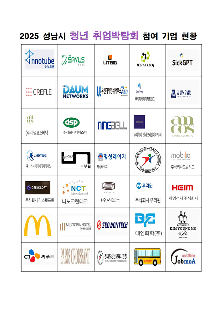| ▲ 고용과-2025 성남시 청년취업박람회 참여 기업 현황 |