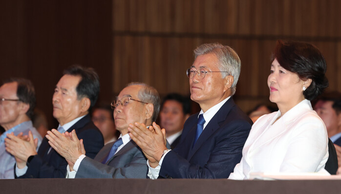 한편 전날 행사에는 9·19 평양공동선언의 주역들과 참모, 현역 의원 등 문재인 정부 인사들이 대거 집결했다. 문재인 정부에서 국무총리를 지낸 정세균 노무현재단 이사장과 이낙연 전 민주당 대표, 장하성·김상조 전 청와대 정책실장, 정의용 전 청와대 국가안보실장, 이해찬 전 민주당 대표, 임종석 전 청와대 비서실장, 탁현민 전 청와대 의전비서관 등이 모두 자리했다.
