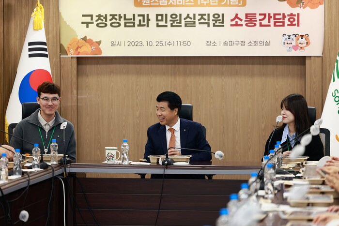 | ▲ 서강석 송파구청장이 민원실직원들과 소통의 시간을 갖고 있다.(23.10.25)(사진=송파구청 제공) |