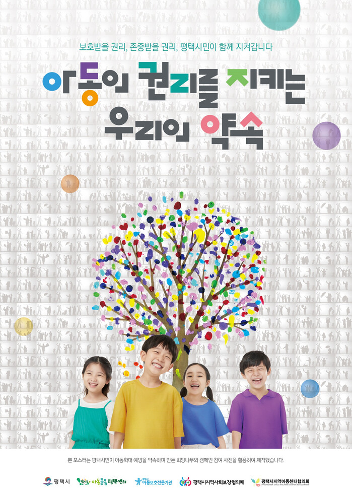 포스터는 평택시청 및 읍면동 행정복지센터, 지역아동센터, 다함께돌봄센터 등 아동 관련 기관·시설·단체 등에 배포되며, 시 공식 누리집을 통해서도 홍보된다. 특히 시민이 직접 참여한 캠페인 장면과 다짐 이미지를 포함해 지역사회가 함께 아동을 보호한다는 긍정적 메시지를 더욱 강조했다.