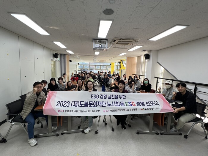[시민일보 = 여영준 기자] 서울 도봉구(구청장 오언석) 도봉문화재단이 지난 25일 북한산생태탐방원 2층 선인봉홀에서 ‘ESG·윤리·인권경영 선포식’을 열고, 모든 임직원이 지속가능한 경영기반 마련을 위해 ESG 경영을 적극적으로 실천할 것을 선언했다.