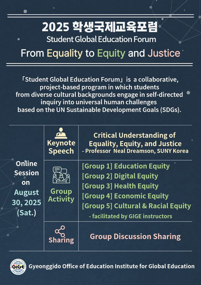 조영민 경기도교육청국제교육원장은 "올해 포럼은 평등에서 나아가 형평성과 정의를 다루며 학생들이 공통의 사회문제를 인식하고 협력하여 문제를 해결할 수 있는 방안을 모색할 수 있도록 지원하는 데 중점을 두었다”며 “앞으로도 학생들이 세계시민으로 성장할 수 있도록 다양한 국제교육 기회를 제공하겠다”고 말했다.