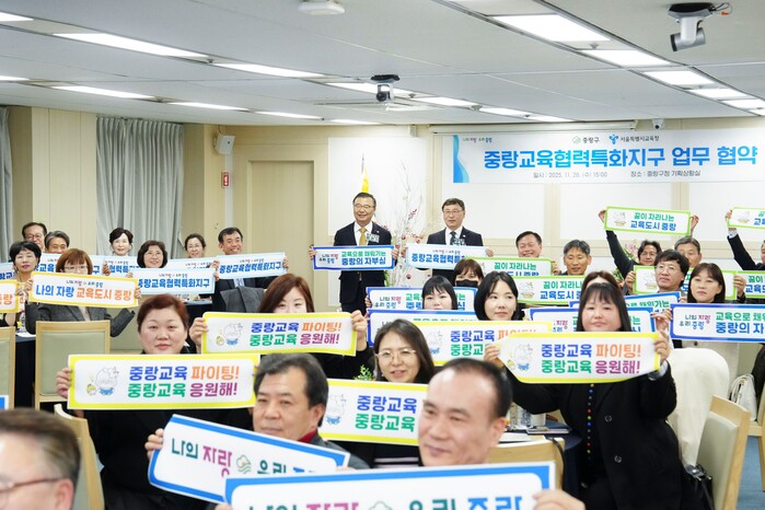 [시민일보 = 여영준 기자] 서울 중랑구(구청장 류경기)가 최근 구청 4층 기획상황실에서 서울시교육청과 ‘중랑교육협력특화지구’ 업무협약을 체결했다.