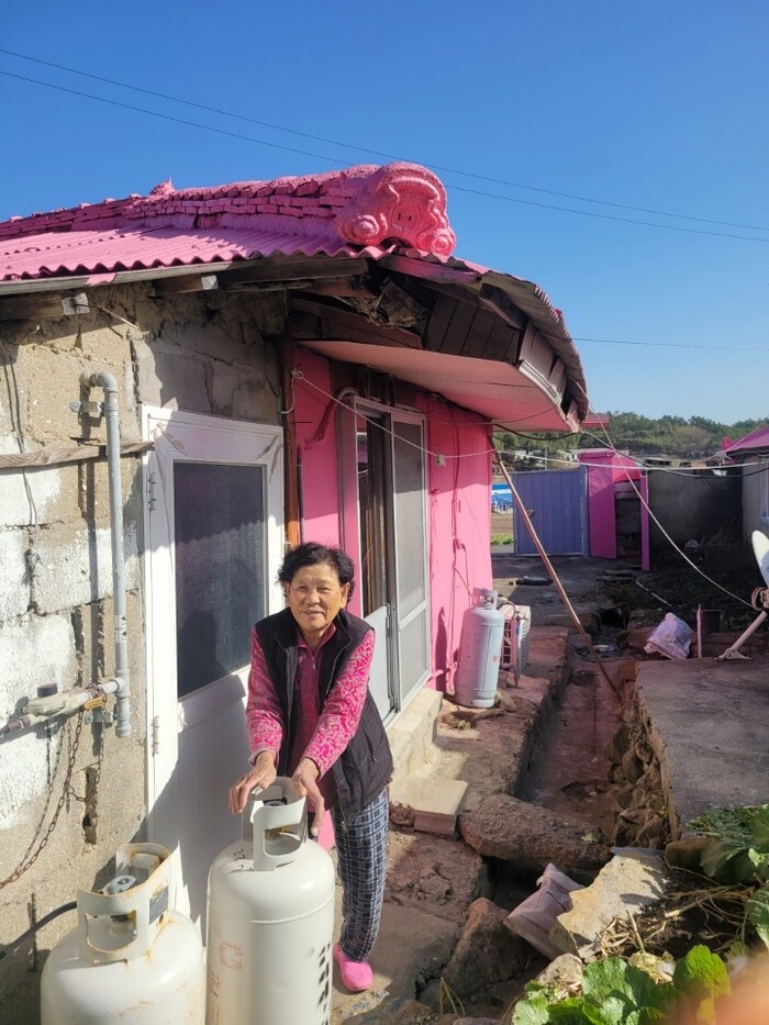 | ▲ 압해 매화도 김복순 씨 가정에 배달된 가스 (출처=신안군) |