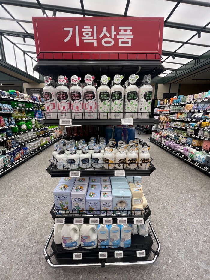 신세계 백화점 대전점에 입점된 비어썸 제품은 세탁세제, 섬유유연제, 표백제, 주방세제 4가지 제품이다.