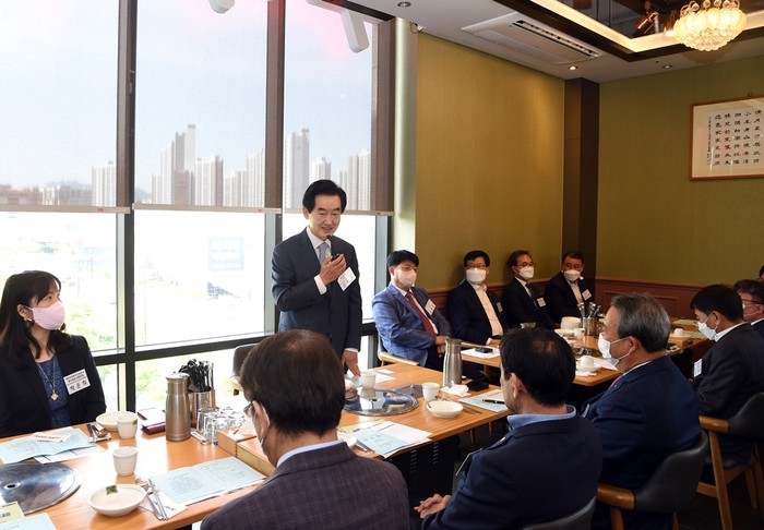 안병용 경기 의정부시장은 11일 지역내 기관장들이 참석하는 수요회 5월 정례회에 참석했다. 이번 수요회는 각급 기관들의 현안사안을 논의했으며, 또한 ‘내고향 살리는 고향사랑 기부제’도 같이 논의했다. 사진은 안 시장이 수요회에 참석해 인사말을 하고 있는 모습. (사진제공=의정부시청)