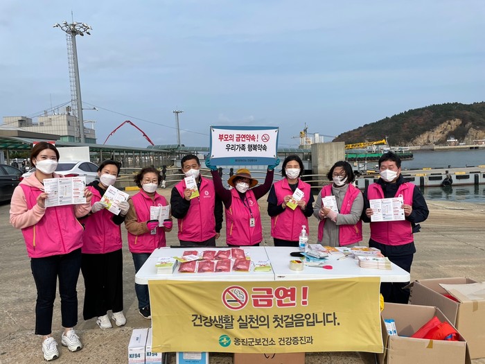 [인천=문찬식 기자] 인천 옹진군 보건소가 17일 백령면 선착장(용기포항)에서 '청정한 옹진군, 금연섬 함께 만들기' 홍보 캠페인을 전개했다.