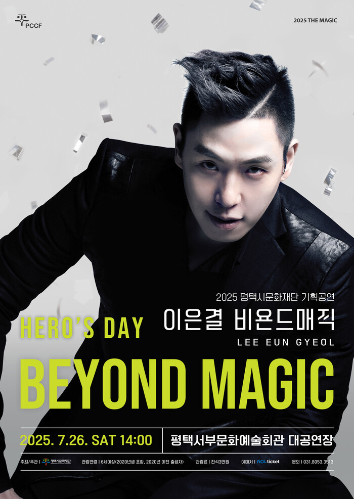[평택=오왕석 기자] 평택시문화재단은 뜨거운 여름의 절정인 오는 7월 26일(토) 평택 서부문화예술회관 대공연장에서 <이은결 BEYOND MAGIC>을 선보인다. 오후 2시와 6시30분, 총 2회에 걸쳐 진행되며, 특별히 2시 공연은 ‘HERO’s DAY’로 지정해 지역사회에서 헌신하고 있는 지역사회 공헌자와 그들의 가족 600여명을 초청한다.