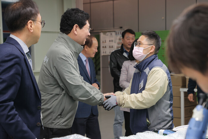 [용인=오왕석 기자] 이상일 용인특례시장은 10일 오전 처인구 백암면에 있는 장애인직업재활시설인 성만원을 찾아 시설 관계자와 장애인 근로자들을 격려했다.