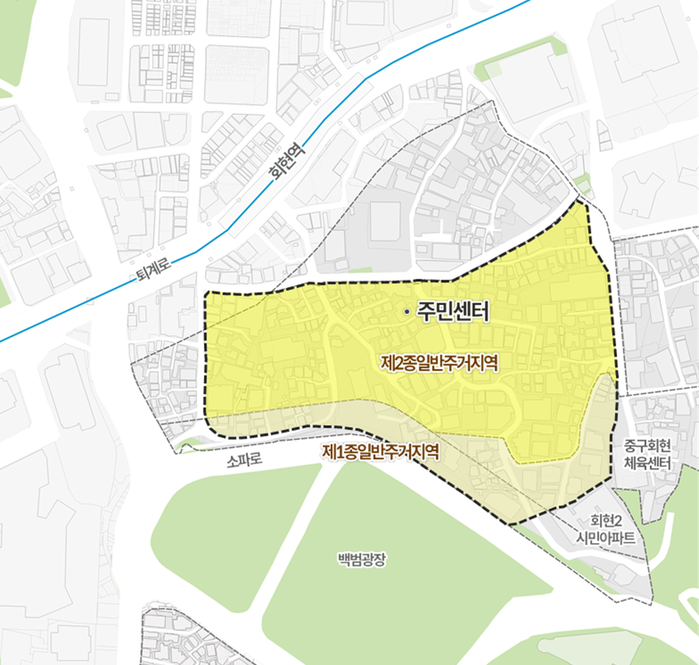 회현동은 도심에 얼마 남지 않은 노후 저층 주거지역이다. 이번에 선정된 구역은 회현동1가 164번지 일대 6만3944㎡로 중앙에 회현동주민센터가 있고 남쪽으로는 남산순환도로인 소파로와 인접했다.