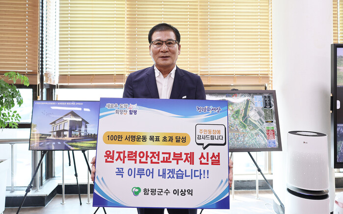 이상익 함평군수는 “100만 서명운동에 적극 참여해 주신 군민들께 감사드린다”며 “방사능 비상계획 구역 내 지자체에 대한 재정적 지원을 위해 원자력 안전교부세 신설을 반드시 이루어 내겠다”고 말했다.