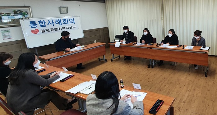 경기 동두천시 불현동행정복지센터가 16일 관련 기관들과 통합사례회의를 열고 사례관리 가구 중 노인 관련 지원이 필요한 가구에 대해 협력 지원방안을 논의했다. 사진은 이날 회의가 진행되고 있는 모습. (사진제공=동두천시청)