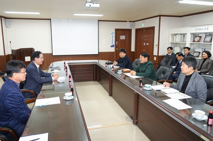 | ▲ 강기정 광주광역시장이 29일 오후 북구 첨단산단 내 ㈜상오정밀 에서 열린 정책소풍에 참석해 지역 뿌리기업의 지원대책을 논의하고 있다./광주광역시 제공 |