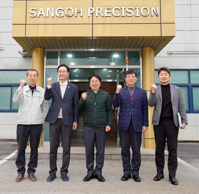 | ▲ 강기정 광주광역시장이 29일 오후 북구 첨단산단 내 ㈜상오정밀 에서 열린 정책소풍에 참석해 박상오 상오정밀 대표, 최병철 한국금형산업진흥회 상근부회장 등과 지역 뿌리기업의 지원대책을 논의한 뒤 기념촬영을 하고 있다./광주광역시 제공 |