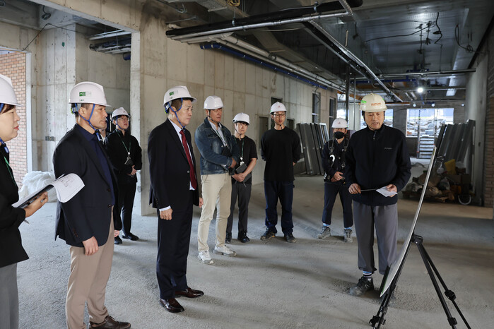 이날 김정헌 구청장은 관계 공무원들과 함께 현장 곳곳을 둘러보며 하늘누리센터 건립 사업의 추진 경과와 공사 진행 상황 등에 대해 보고를 받았다. 특히 김 구청장은 현장 관계자들을 격려하며 안전 시공을 당부했다.