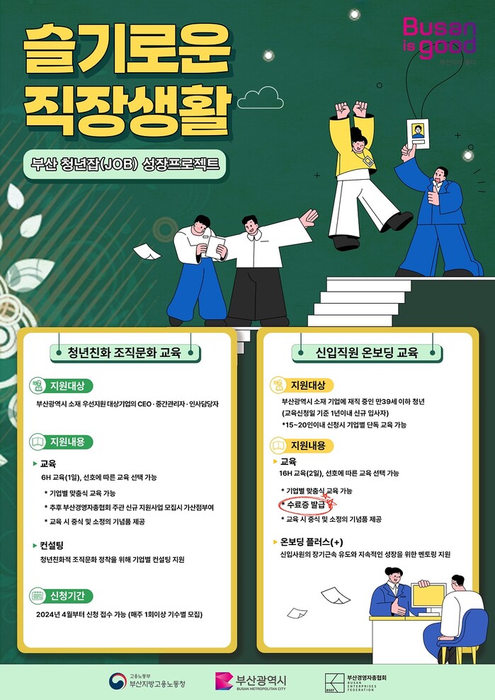 (사)부산경영자총협회(회장 김광수)가 신입직원과 관리자를 위한 무상교육 '부산 청년잡(JOB) 성장 프로젝트 사업'을 실시할 계획이라고 밝혔다.