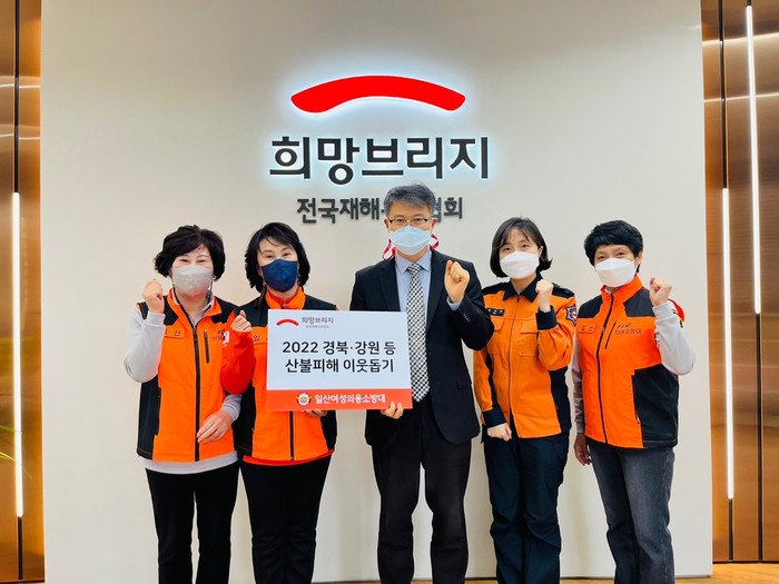 이번 기부금은 경북·강원 등 산불피해 이재민에게 도움이 됐으면 하는 일산 여성의용소방대원들의 바람으로 진행되었으며, 자발적으로 참여한 대원들의 작은 온기가 모여 성금 100만원이 마련되었다.