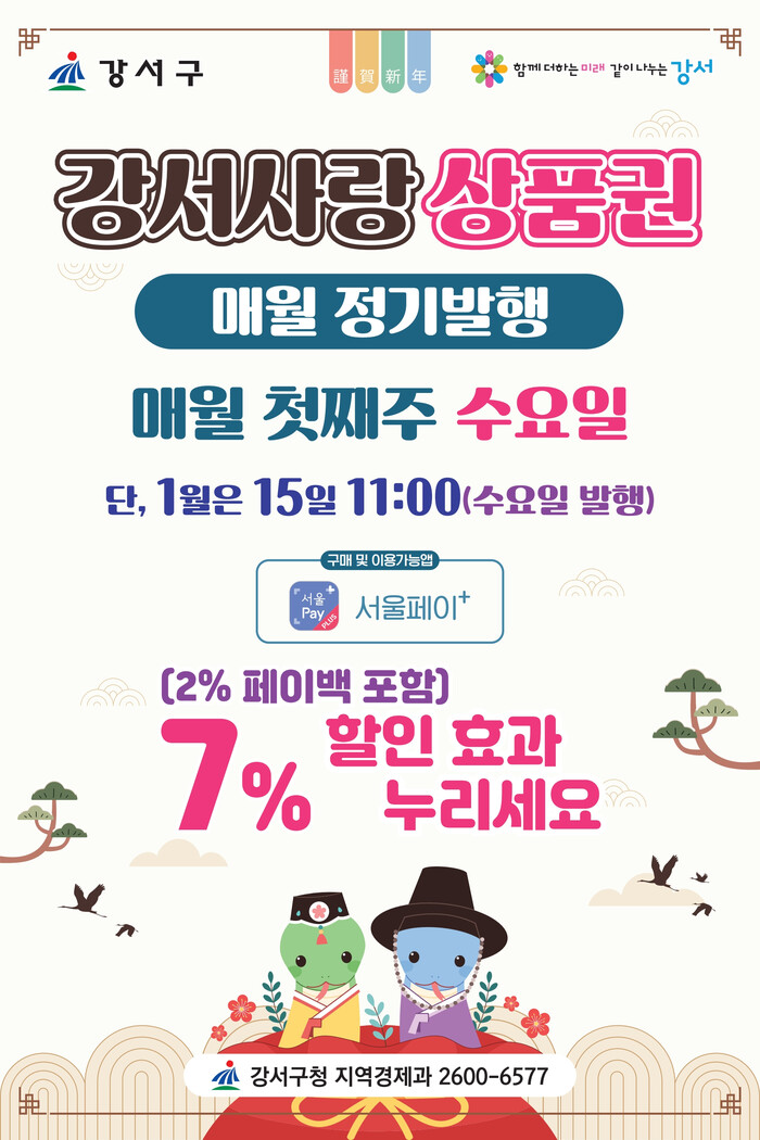 [시민일보 = 박소진 기자] 강서구(구청장 진교훈)가 오는 15일, 60억원 규모의 ‘서울강서사랑상품권’을 발행한다.