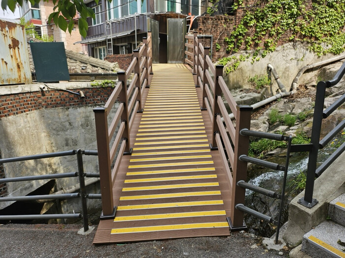 이에 종로구는 올해 초 주민 민원을 접수하고 2월 부서 조사와 실측을 거쳐 지난 4월 29일 연장 8m, 폭 2m 규모의 교량 설치 공사에 들어가 5월 13일 마무리 지었다.