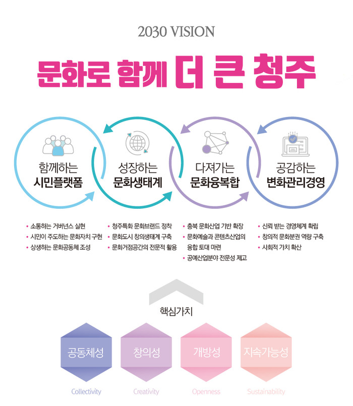 이는 청주문화재단이 지난해 설립 20주년을 맞아 발표한 2030 비전 [문화로 함께 더 큰 청주]의 12대 전략 과제 중 하나인 ‘신뢰받는 경영체계 확립’과도 궤를 같이한 것으로, 시민을 위한 문화행정기관으로서의 공공성을 강화하고 21년 역사를 가진 재단에 걸맞은 선진제도를 구축하려는 강력한 의지가 담겼다.