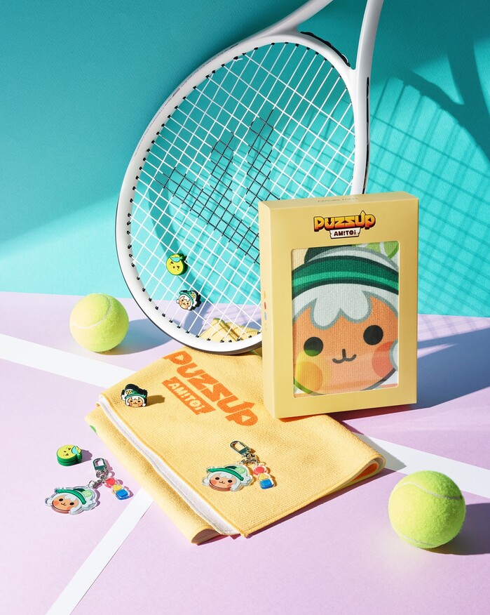 이달 6일부터 2주간 진행되는 아모레몰 행사에서 퍼즈업 캐릭터와 테니스를 테마로 한 굿즈 3종(스포츠 타올, 아크릴 키링, 댐프너)을 선보인다.