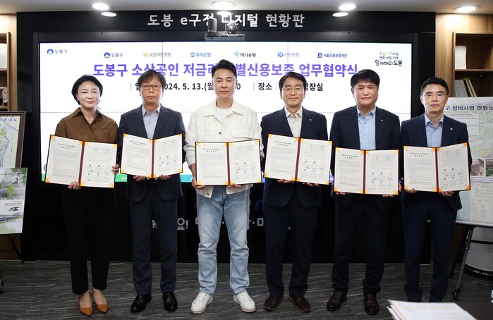 [시민일보 = 여영준 기자] 서울 도봉구(구청장 오언석)가 담보력 부족으로 대출이 어려운 지역 내 중소기업 및 소상공인을 지원하기 위해 13일 국민은행, 우리은행, 하나은행, 신한은행, 서울신용보증재단과 ‘도봉구 소상공인 저금리 특별보증 업무협약’을 체결했다.