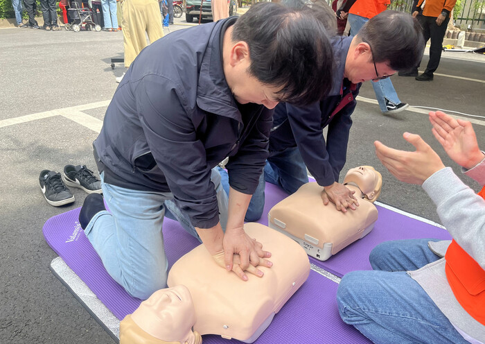 심페소생술 교육은 심정지 환자에 대한 신속한 대처 능력을 높일 수 있도록 서대문구보건소와의 협업으로 응급구조사가 진행했다.