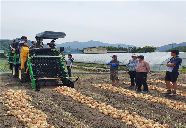 군 관계자에 따르면 “양파 잎 도복 후 50~70% 정도 말랐을 때가 수확 적기인데, 너무 일찍 수확하면 잎 절단 부위에서 부패가 발생하고 구비대가 덜되어 수량이 감소하며, 너무 늦게 수확하면 열구 발생과, 뿌리 부위가 부패하기 쉽다”며, “맑은 날 상처가 나지 않도록 수확하고, 양파의 품질과 저장성 향상을 위해서는 반드시 2~3일정도 건조(예건)해 수집작업을 해주시기 당부드린다.”고 전했다.