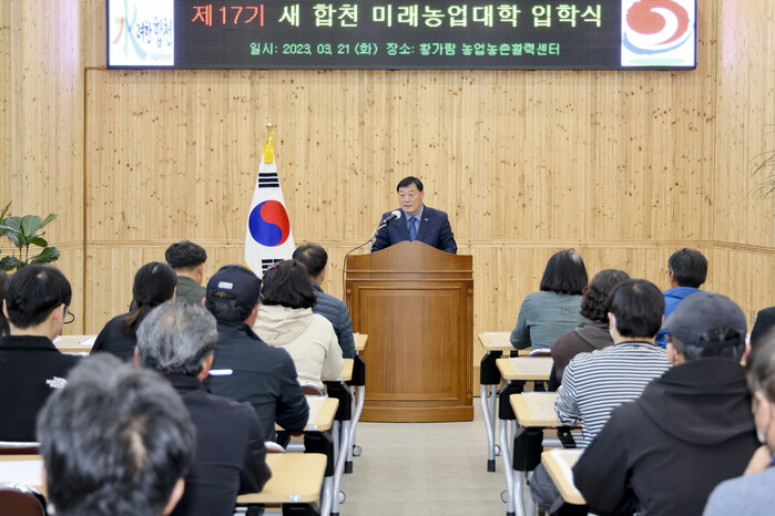 김윤철 합천군수는 입학식에서 “바쁜 일상 속에서도 배움의 열정으로 변화에 도전하는 교육생들의 높은 의지와 열정이 지역농업을 바꾸고 발전시키는 견인차 역할을 할 것으로 기대한다” 며 교육생들을 격려했다.