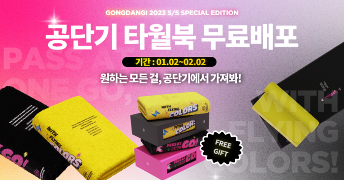공단기에 따르면 타월북은 ▲누구나 단번에 합격시킬 수 있다는 공단기의 자신감을 표현한 ‘Yellow’ ▲잠재된 가능성을 일깨워 줄 수험생에 대한 믿음을 표현한 ‘Black’으로 색상별 응원 문구를 달리한 2종 패키지로 구성됐다.