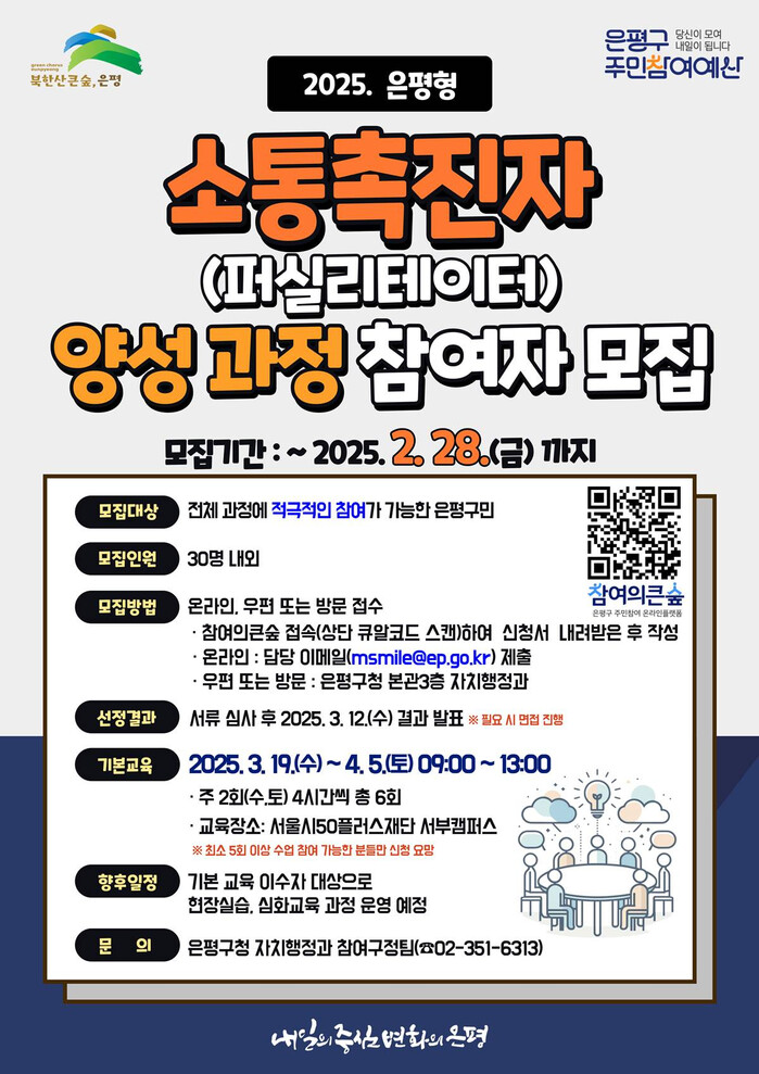 | ▲ 2025년 은평형 소통촉진자 양성과정 참여자 모집 포스터. (사진=은평구청 제공) |