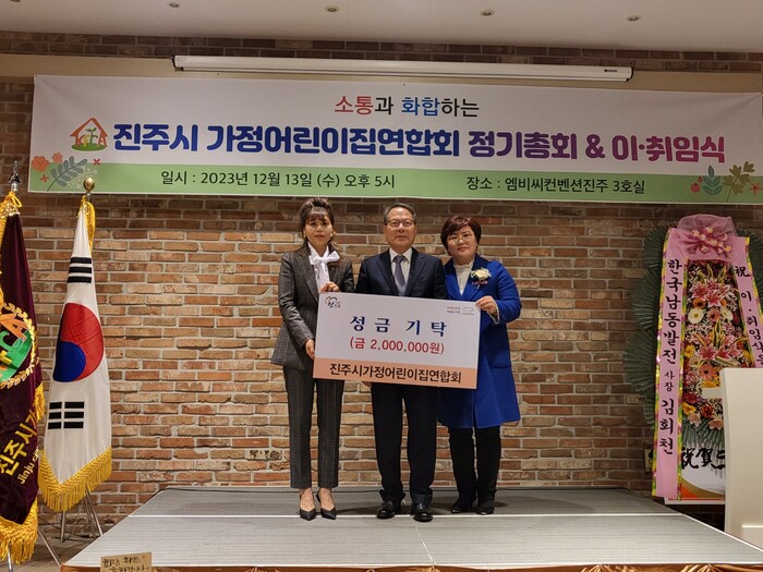 [진주=엄기동 기자] 진주시 가정어린이집 연합회는 지난 13일 엠비씨컨벤션센터에서 열린 정기총회 행사에서 어려운 이웃돕기 성금 200만 원을 진주시복지재단에 기탁했다고 밝혔다.