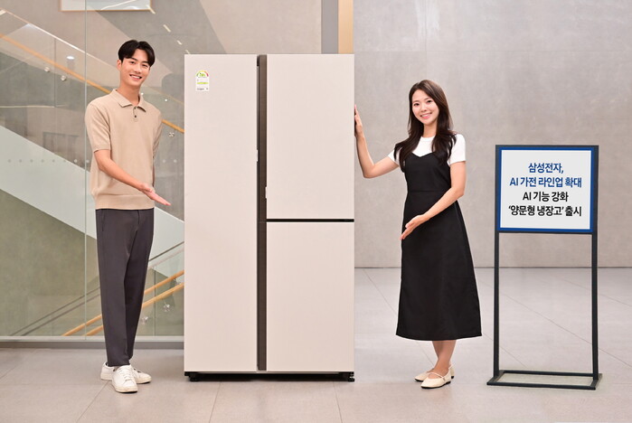 삼성전자는 AI 기능을 강화한 양문형 냉장고 출시로 AI 가전 라인업을 확대한다.