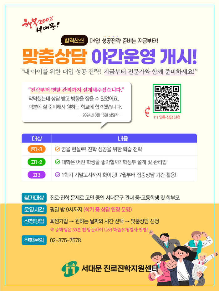 | ▲ 서대문 진로진학지원센터 맞춤상담 야간운영 포스터. (사진=서대문구청 제공) |