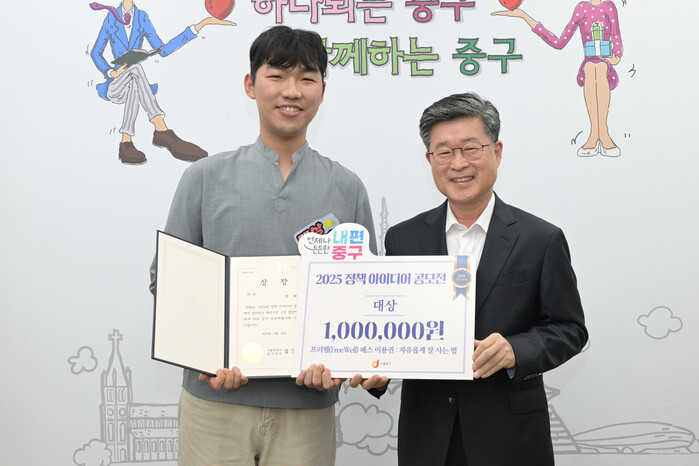 [시민일보 = 여영준 기자] 중구(구청장 김길성)가 ‘2025 정책 아이디어 공모전’에 접수된 아이디어 중 우수 제안을 선정해 발표하고, 최근 시상식을 개최했다.