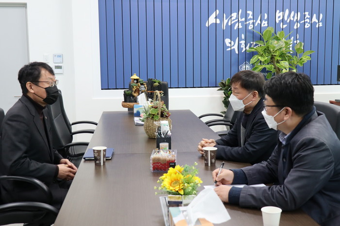 | ▲ 남종섭 위원장이 전교죠 경기지부 관계자들과 도 교육 현안에 대해 논의를 하는 모습. (사진제공=경기도의회) |