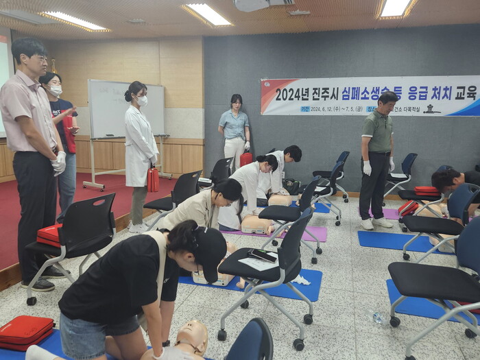 진주시보건소는 6월 12일부터 7월 5일까지 15회에 걸쳐 진주시보건소 다목적실에서 ‘심폐소생술 등 응급처치교육’을 실시한다.