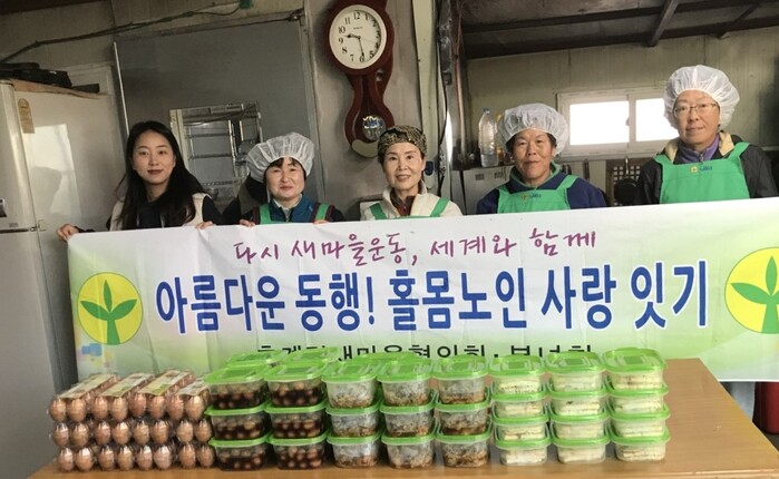이번 ‘홀몸어르신 사랑잇기’ 행사는 취약계층인 홀몸 어르신들을 위해 새마을협의회·부녀회에서 두부조림과, 불고기, 김치 등 밑반찬을 만들어 홀몸 어르신 댁을 방문해 직접 전달했다.
