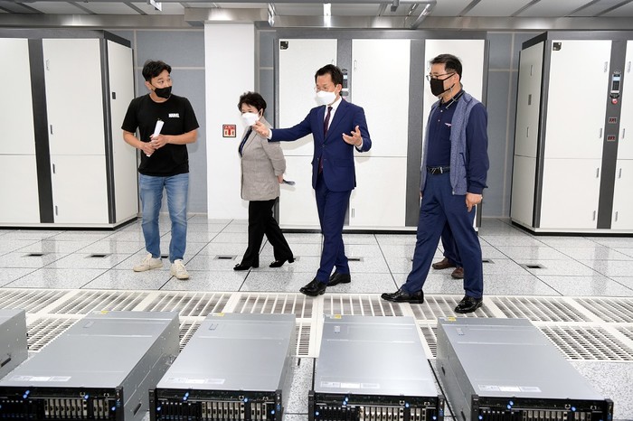 [광주=정찬남 기자] 문영훈 광주광역시 행정부시장이 10일 오후 광주과학기술원 내 슈퍼컴퓨팅센터를 방문해 연구원으로부터 시설에 대한 설명을 듣고 있다. /광주광역시 제공